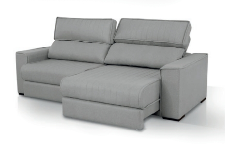 Encosto: Reclinável, detalhes em costuras verticais, enchimento de fibra siliconizada desmontável.